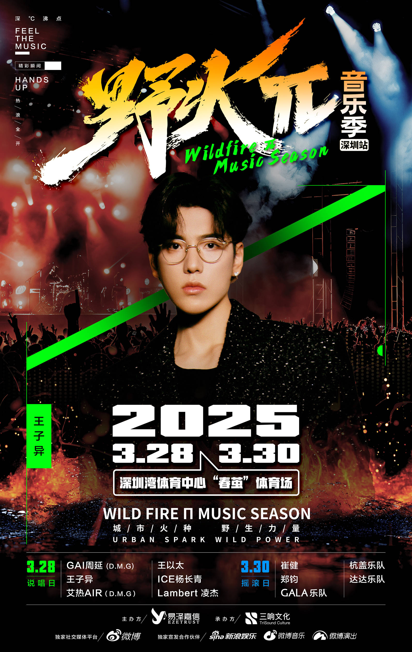 近日,野火π音乐季·深圳站演唱会官宣!届时将于3月28日和3月30日在深圳湾体育中心“春茧”体育场激情开演,本次演唱会由深圳市易泽嘉信文化传播有限公司主办,深圳市三响文化传媒有限公司承办,以“深℃沸点”为主题,精心打造两个不同主题专场演出,分别为:说唱专场与摇滚专场,旨在传递年轻态度与深圳精神。3月28日将有GAI周延(D.M.G)、王子异 、艾热AIR(D.M.G)、王以太、ICE杨长青、Lambert凌杰火力全开;3月30日将有崔健、郑钧、GALA乐队、杭盖乐队、达达乐队燃爆开唱。两大音乐风格带来极致碰撞,为观众上演一场前所未有的音乐盛宴。这一次,去现场,去热爱!